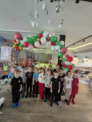 Na koniec zwiedzania dzieci zakupiły sobie pamiątkowe magnesy i pocztówki. Kolejnym punktem naszej wycieczki był pobyt w sali zabaw „Figloraj”. Zjeżdżalnie, interaktywne place zabaw, kącik plastyczny i zróżnicowane strefy z ciekawymi zabawkami sprawiły, że każdy znalazł coś dla siebie. Na buziach uczniów gościła radość i szczęście. Była to doskonała okazja do rozwoju sprawności motorycznych i społecznych. Po prawie dwóch godzinach zabawy dzieci spotkała wielka niespodzianka. Odwiedził je Święty Mikołaj. Porozmawiał z nimi, wręczył prezenty i z każdym zrobił pamiątkowe zdjęcie. Następnie przy dźwiękach świątecznych przebojów tańczył z dziećmi w wesołym korowodzie. Na pożegnanie obiecał, że przybędzie za rok. Uczniowie pełni niecodziennych wrażeń i pozytywnych emocji wracali do szkoły. Wspaniała zabawa i spotkanie z Mikołajem na długo pozostaną w ich pamięci.