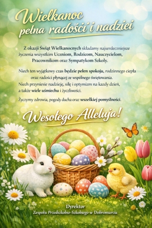 Z okazji Świąt Wielkanocnych składamy najserdeczniejsze życzenia wszystkim Uczniom, Rodzicom, Nauczycielom, Pracownikom oraz Sympatykom Szkoły.